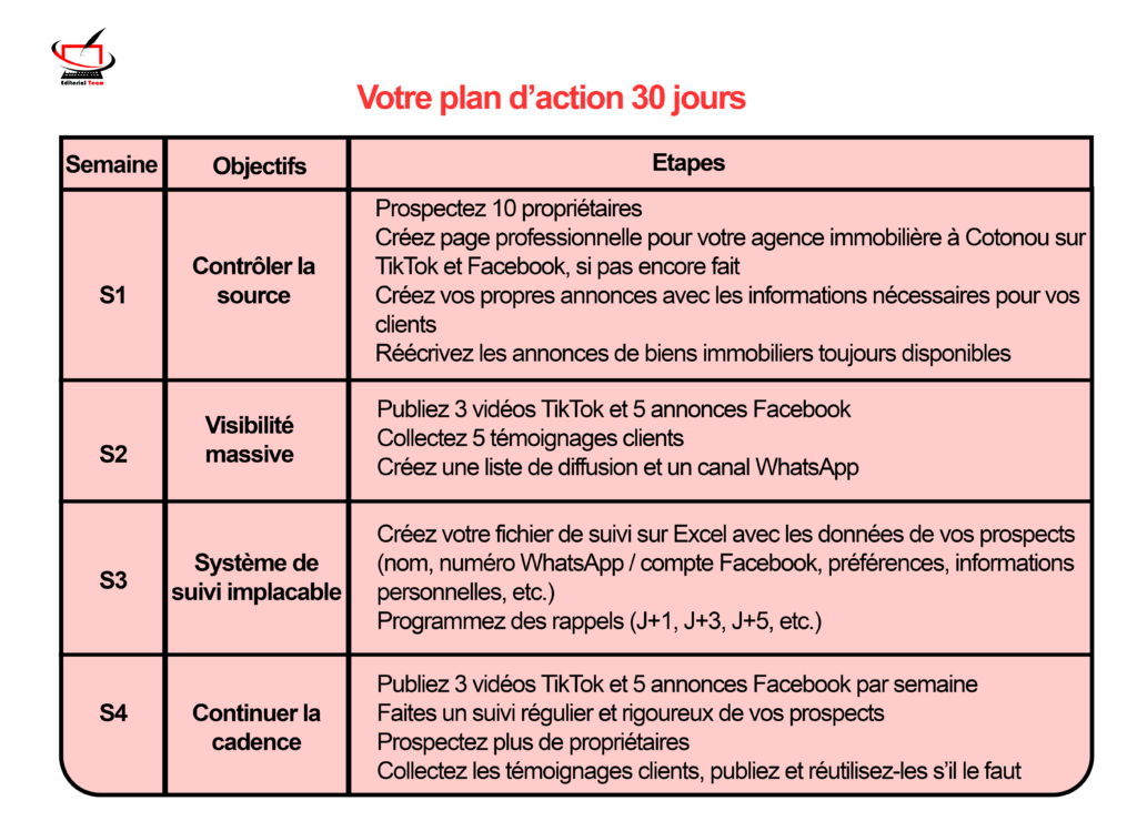 Vous connaissez les 5 secrets des agences immobilières à Cotonou qui dominent le marché. Ce ne sont pas des astuces magiques, c’est surtout une méthode rigoureuse appliquée avec discipline.